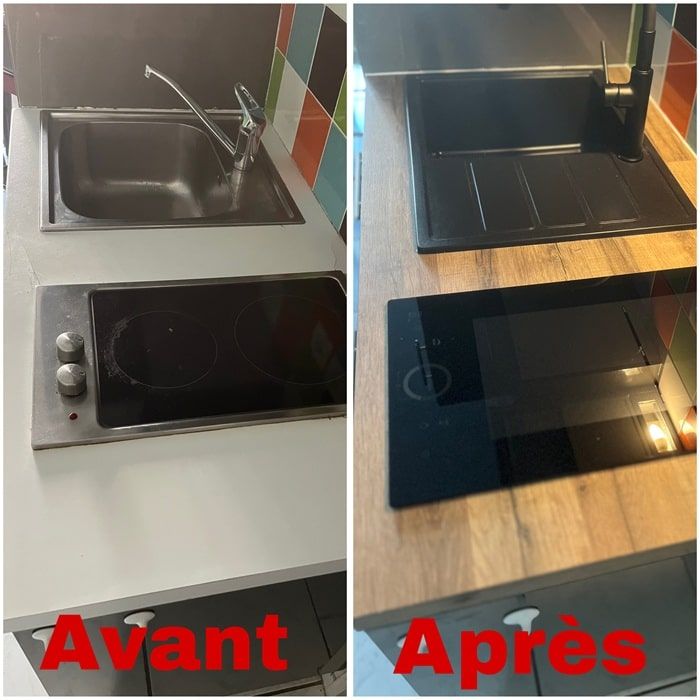 J’ai remis en état cette cuisine d’Arcachon en changeant le plan de travail, l’évier et la plaque de cuisson.